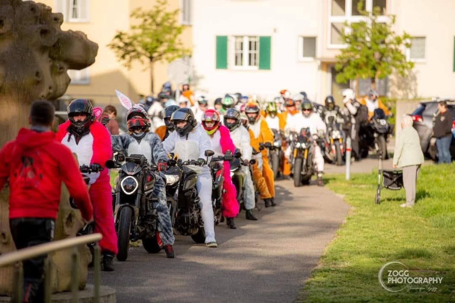 Das Hasenkostüm über das Leder gestülpt, steigen sie an diesen Ostern auf ihre Bikes – nicht nur für die Fahrt, sondern für die Menschen. Mit vollgepackten Taschen, gesponserten Schokoladen und viel Herz besucht die «ACE Bunnies on Tour» Alters-, Kinder-, Pflegeheime und öffentliche Plätze.